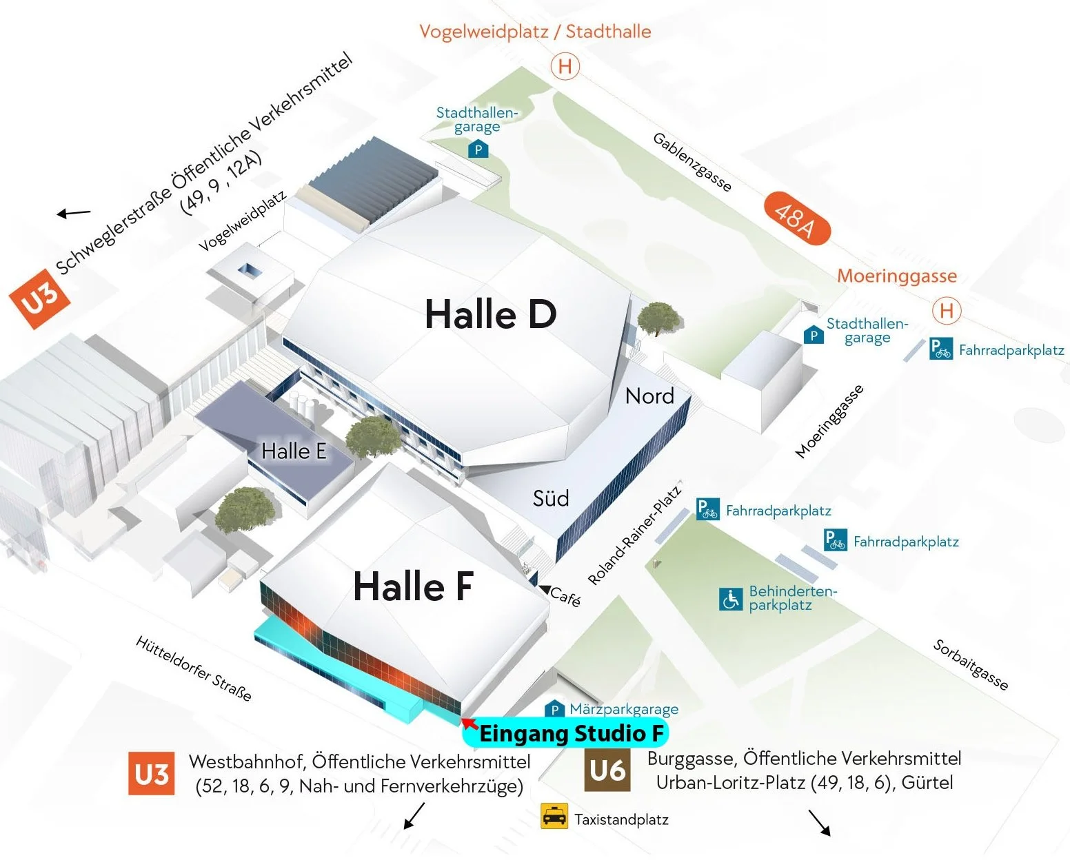 Ja, rund um das Veranstaltungsgelände stehen zahlreiche Parkmöglichkeiten zur Verfügung. Bitte beachte, dass in Wien die Kurzparkzonenregelung gilt – das bedeutet, das Parken ist in der Regel werktags kostenpflichtig und zeitlich begrenzt.